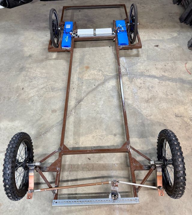 The steel frame will support plywood, aluminum, and polycarbonate body.